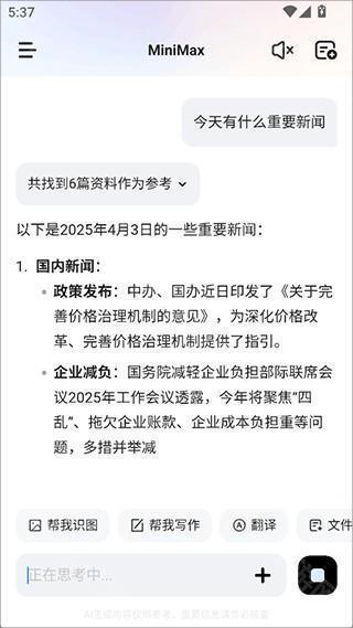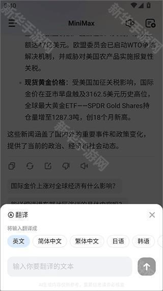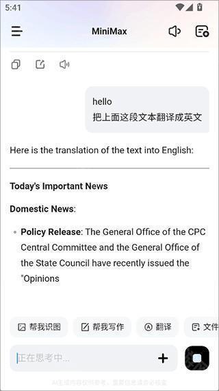 【MiniMax】这是一款手机翻译理性的软件,这款软件由“稀宇科技”工作室制作的软件,支持文本、图像和语音输入,提供智能问答等功能,可以帮助您智能搜索问答,准确识别和分析图像,沉浸在语音通话中,专业/创造性地写作。它是您工作和学习的好帮手,还支持多终端同步对话录音、语音阅读和代码运行,如果用户碰到需要翻译的文字和手写体,还可以进行拍照翻译。