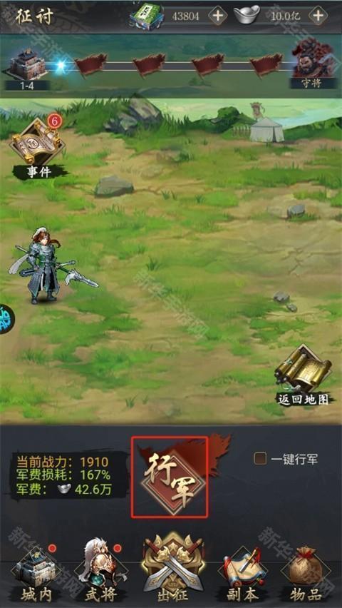 3、进入后你可以点击行军或者一键行军,行军会消耗军费;