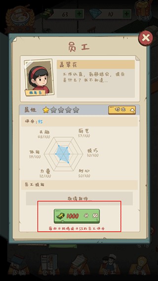 3.选择好要升级的员工后,接着点击升级按键,需要的一定金币才可以给员工进行升级。