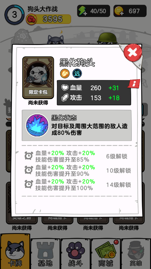只要玩家不断战斗升级,获取砖石和金币不日即集全狗头大军,祝你们好运。