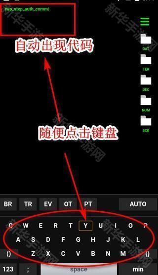 2、进入代码编辑页面后,在键盘上随意点击一个英文字母,然后AUTO键盘效果就出来了;