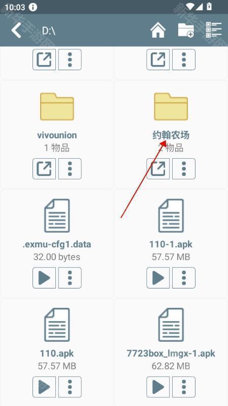 3. 使用鼠标导航至D盘,找到名为“约翰农场”文件夹,然后打开并启动“JohansFarm.exe”会黑屏一段时间,请耐心等待。