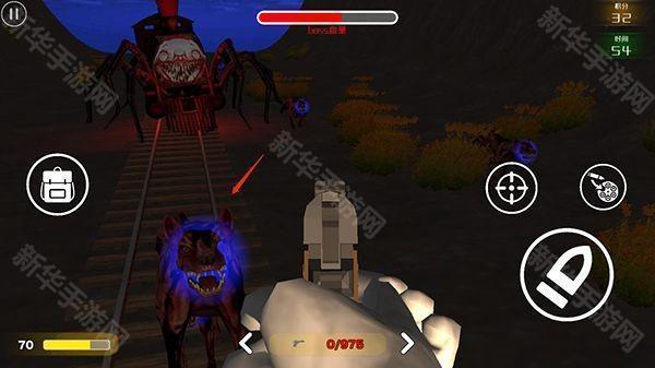 5、使用武器对准怪物火车,展开射击,击中后Boss血量就会减少;