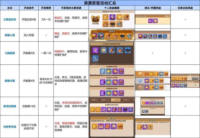 (2)特殊活动积极参与游戏内的各种资源获取活动,如三英战吕布、群雄讨董、南蛮入侵、煮酒论英雄等,吕布两天开一次,可以获取大量基础资源和锻造石,州府战可以获取元宝、武器箱子、加速、迁城令等,董卓每天都有,获取资源较少,但积少成多,蚊子肉再少也是肉。