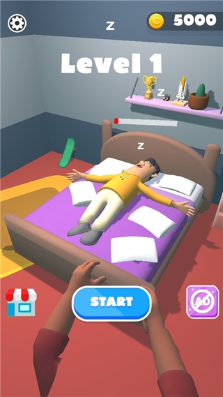 我们在日常生活中总会有许多的压力,不管是上班好,还是上学也好,人们总需要一个发泄口,今天小编带来的这款游戏就可以为大家解压泄愤,游戏虽然画质粗糙,但是玩法简单粗暴。在游戏中你将会面对着一个正在呼呼大睡的人,看着他在自由自在的睡觉是不是非常不爽,没关系,因为你的任务就是需要利用各种道具来叫醒他。