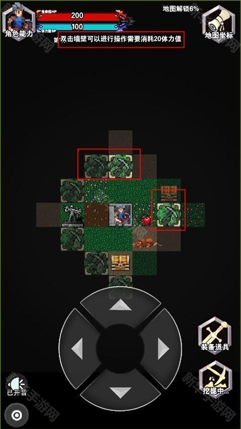 3、在关卡中可以双击挖掘墙壁,但是需要消耗20体力值;