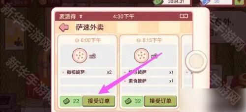 等待快递员进店,和他对话,然后选择披萨,点击供应订单。