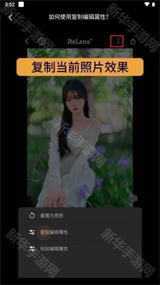 2、然后点击右上角的功能选项,点击复制编辑属性选项;