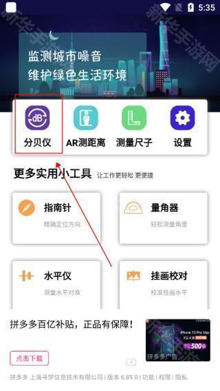 1、下载安装软件,打开,点击首页的“分贝仪”