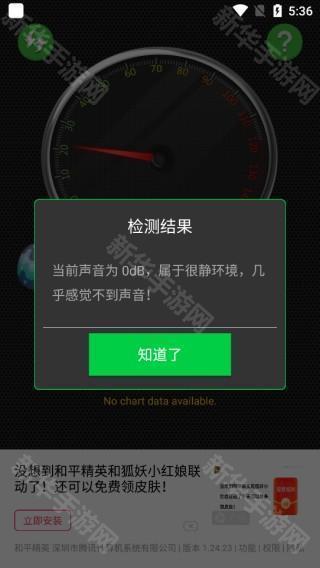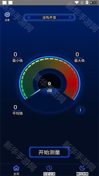 软件首页点击开始测量检测噪音,用户可以看到噪音具体的最大值、最小值、和平均值;