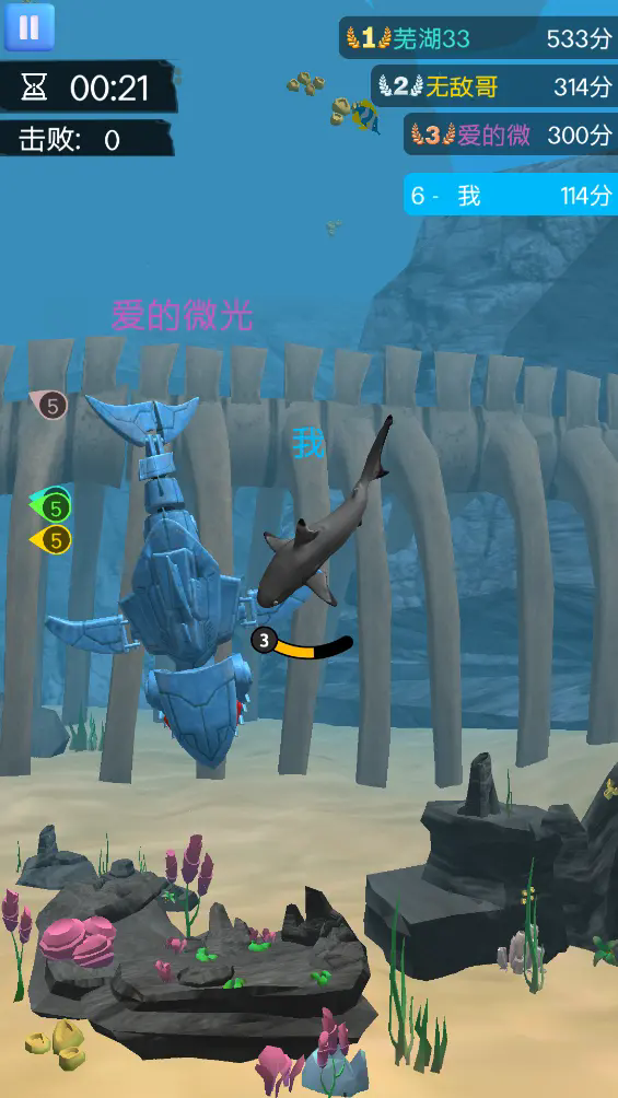 1、我是小鱼儿内通过游动、翻滚、滑翔、啃咬、翻转、鼓气、飞跃和咬扯来完成刺激的挑战;