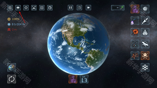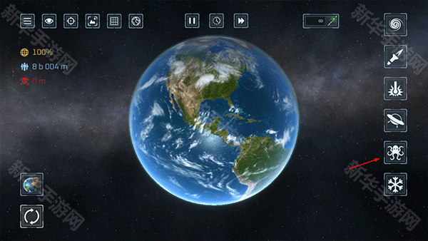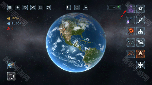 1、首先打开星球毁灭模拟器游戏,点击第五个按钮