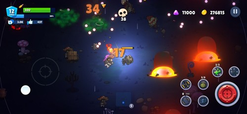 2.选择不同的角色和武器,进入精美的卡通风格场景,射击并消灭所有敌人。