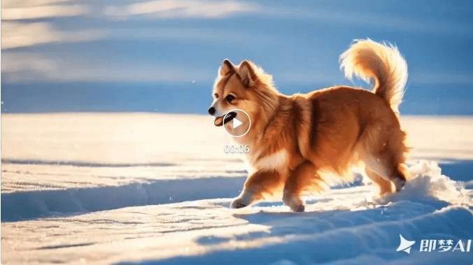 这段视频的提示词为“一只小狗在雪地里奔跑”,这个效果挺好的,快赶上Sora了。