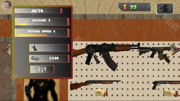 6、每种武器我们可以看到名称、伤害、攻击速度,子弹,价格,比如说AK74需要2500美金。