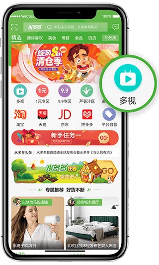 4.水多多是一款电商平台,平台涵盖美妆、百货等产品,以品牌低价为品牌卖点。