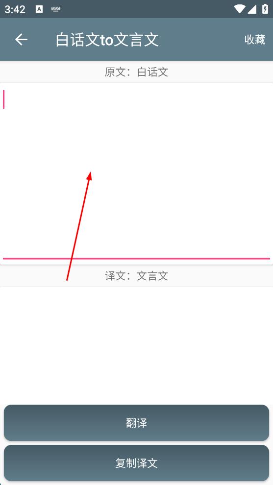 3、在“白话文转文言文”翻译输入页面,输入要翻译的白话文内容,然后点击“翻译”按钮,等待翻译结果生成。