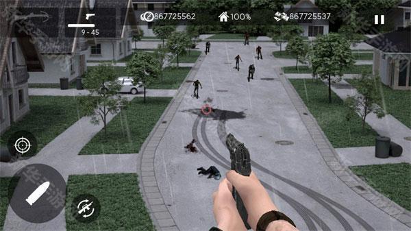 3.玩家需在固定点位进行站桩射击,通过滑动屏幕瞄准丧尸头部或弱点,点击按键开火。每波尸潮间隔可布置陷阱(地雷、铁丝网)、修复障碍或升级武器。