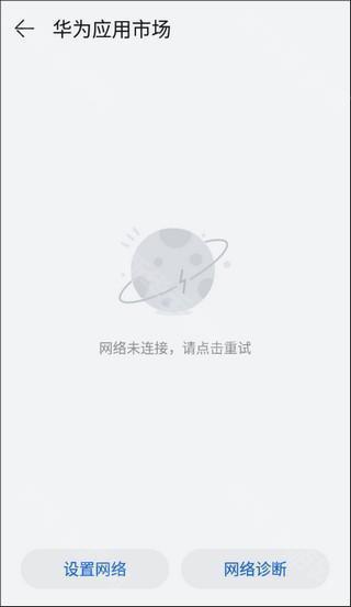4、如果操作正确,我们会进入华为应用市场,但是此时是断网状态,点击返回即可!