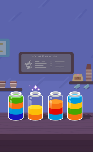 1、目标:用户必须对关卡中所有不同颜色的水进行分类,使每个瓶子只含有相同颜色的水。