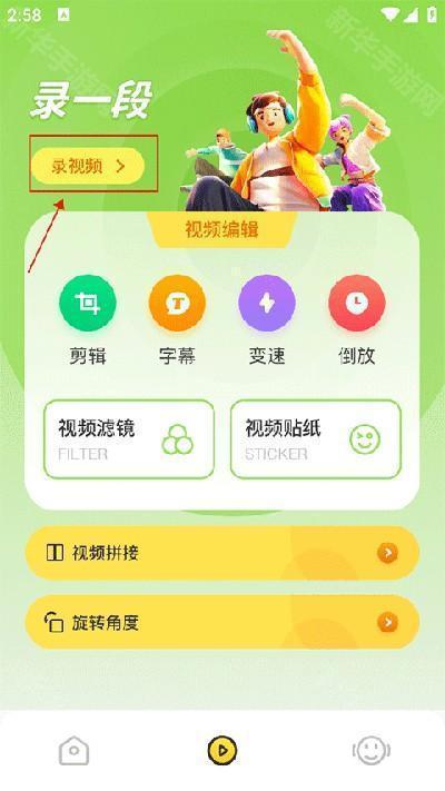 1、下载后打开进入app,在录视频界面中点击上方的录视频;