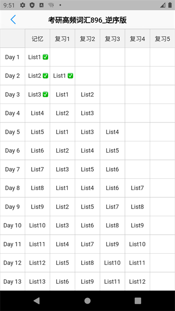 《List背单词》这款软件是一款很好用的背单词软件,这款软件不仅仅是有着各种背单词的技巧,因为这款背单词软件里面,将每个单词都分到了第1天初步学习,第2天巩固练习,还有第4天加强训练,能够很好的带领用户使用这款List背单词软件,在这半个月的时间里面进行多次的巩固训练,使用起来的观感也很出色,有需要的用户快来下载这款List背单词软件体验吧!