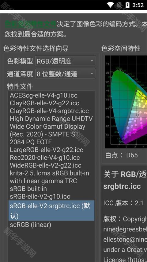 请确保色彩空间区域的选项设置如下:模型为 RGB,通道为8位整数/通道。如果你想了解这些选项的作用,请在色彩原理页面学习色彩管理的更多知识。