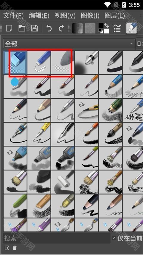 在笔刷预设里面有各种橡皮擦,除手绘笔刷外,直线工具、矩形工具、甚至渐变工具等大多数工具都可以切换到擦除模式用于擦除内容。