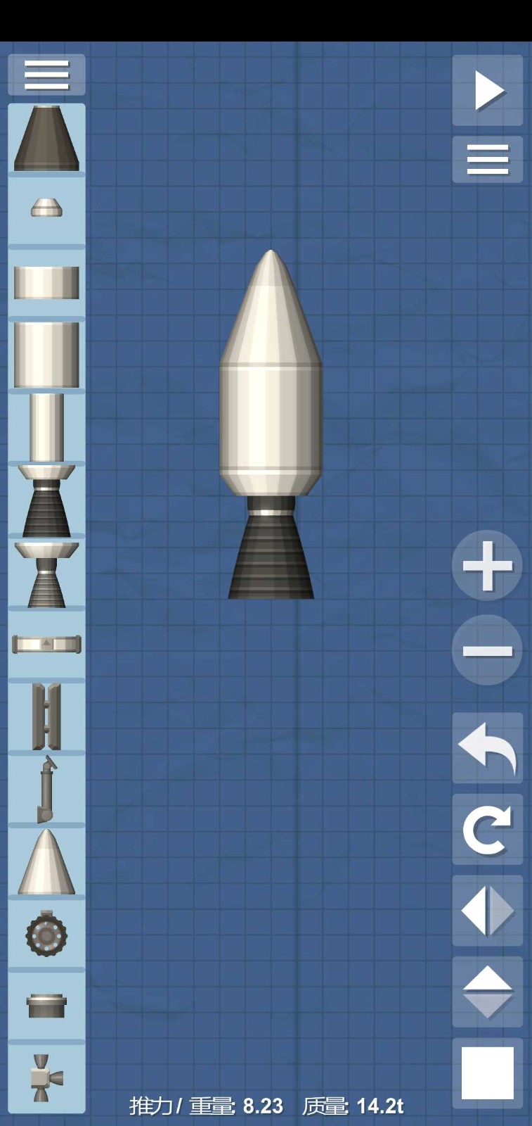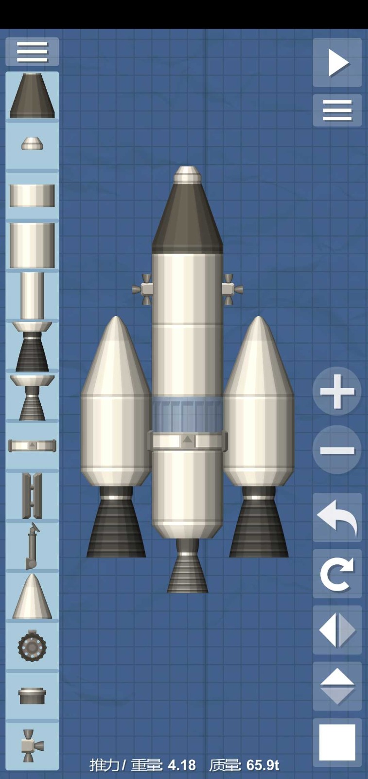5、在鹰发动机下面的隔离器下方放一个长燃料箱和中燃料箱,在*下面加上鹰发动机;