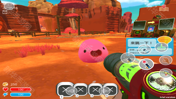 4、在地图中找到史莱姆并点击右边的收集键吸到武器中;