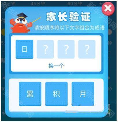 第二步:进入设置页面前需要经过简单的家长成语验证;