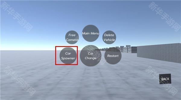 5、游戏内如图,玩家可驾驶汽车碰撞墙壁,以及通过菜单调出多辆汽车进行碰撞,非常的不错。