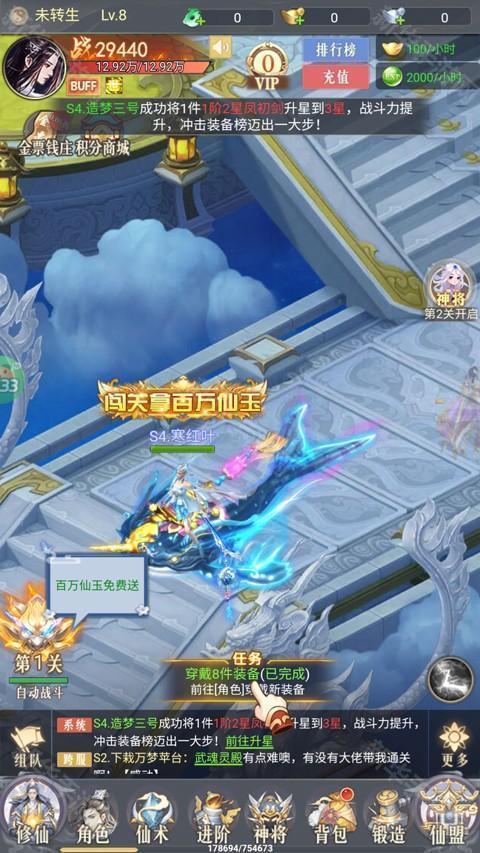 3、进入游戏如图,游戏采用挂机自动战斗;