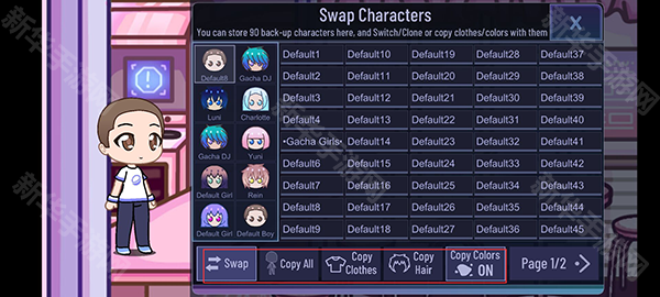 1.帮助角色将颜色、肤色、头发颜色和衣服颜色更改为所需的外观。