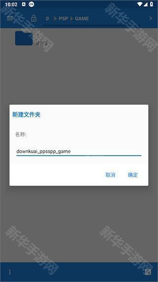 1、首先在手机文件管理器中新建一个文件夹,将下载的iso游戏文件放入该文件夹中,记住文件夹位置,例如:downkuai_ppsspp_game,