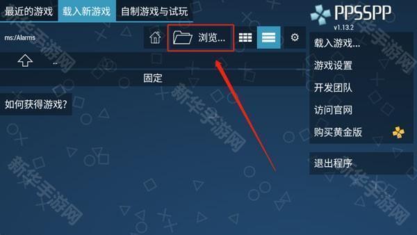 2、打开ppsspp,在“载入新游戏”界面,点击“浏览”,