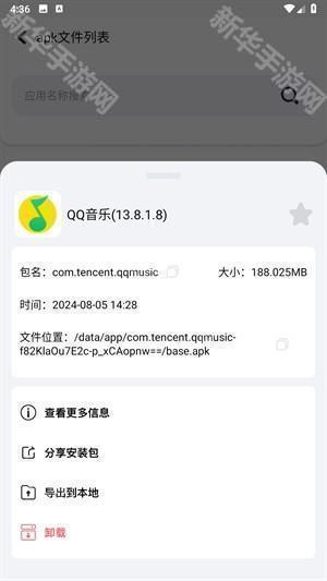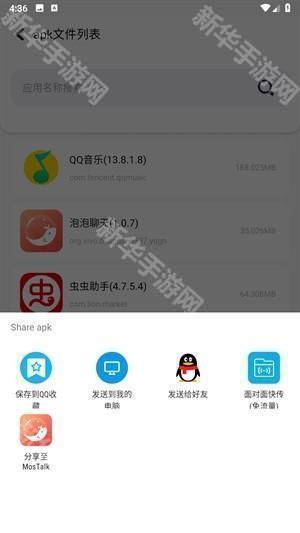 3.可以查看应用的各种信息,还有四个板块可以使用吗,点击分享安装包。