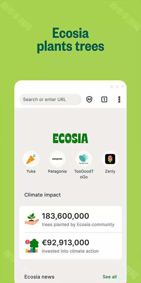 1.Ecosia(绿色搜索引擎)提供快速准确的搜索服务,支持用户高效获取网络资源。