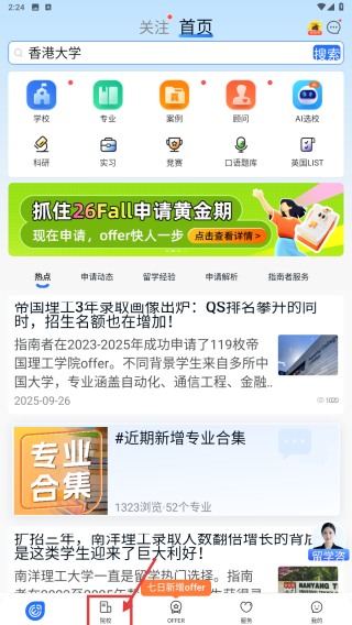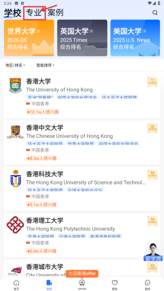 1.查询院校专业:打开软件后进入“院校库”板块,选择目标国家或地区