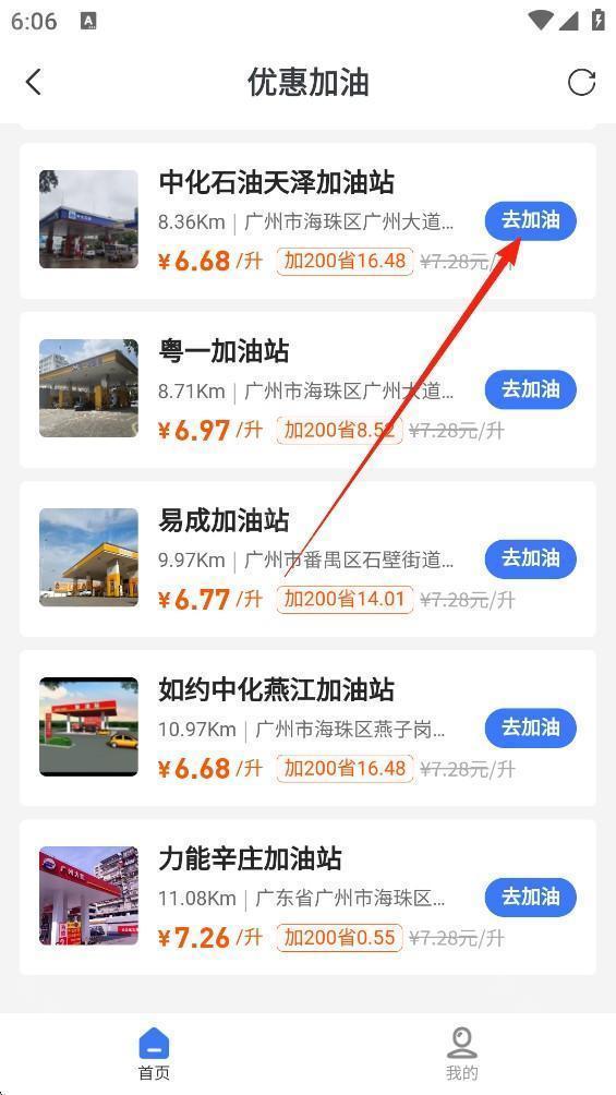 3、挑选到合适的加油站之后,点击【去加油】即可