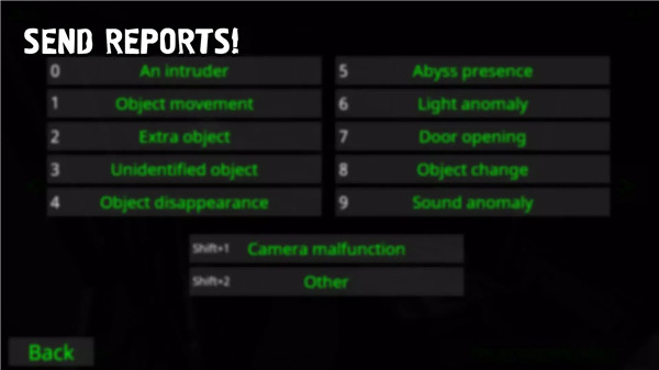 【监控异常事件】这是一款恐怖伪人类型的游戏,游戏由“SimusDeveloper”工作室出品,玩家将扮演监视器的角色,并被放置在监视室中,不断监视多个屏幕,以防止出现任何异常或可怕的事情。事件的难度会随着时间的推移而增加,多个异常现象可能会同时发生,需要仔细记录,按照右下角的“报告”选择正确的选项,异常就会被清除。如果玩家未能及时发现异常,游戏将失败。