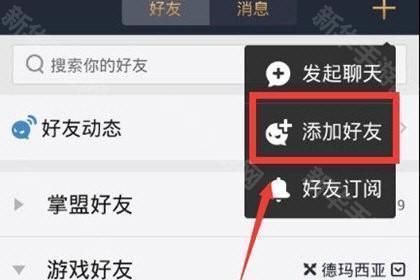 3、之后在【好友】页面点击右上角的+号,选择【添加好友】按钮,可以搜索想要查看战绩的玩家名称;