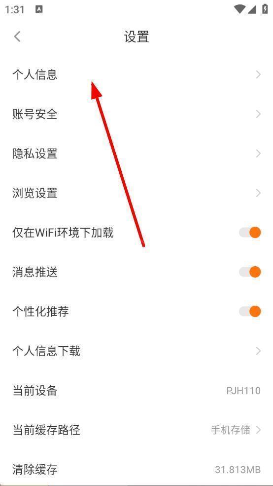 2、在设置页面中,找到并点击个人信息选项,进入个人资料界面。