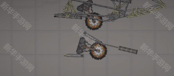 3、需要注意的是,这种不稳定的结构一定要加上支柱,即机头中间的长铁块,调成无重力不碰撞,链接到机头外壳即可