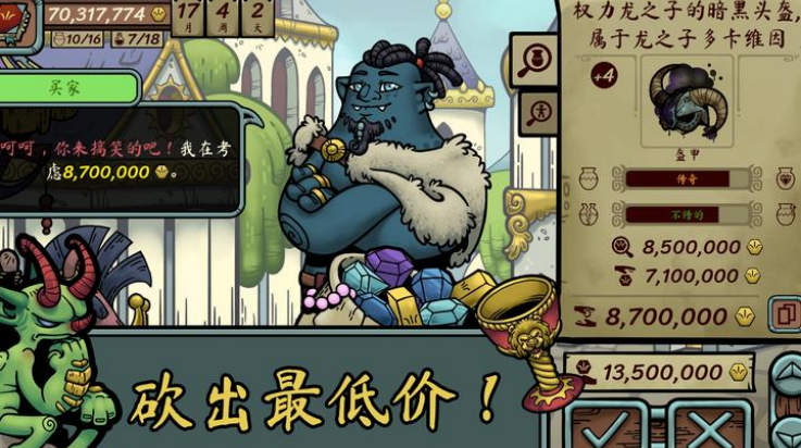 6、进入当铺后,玩家可与其他卖家进行交易,你可以砍价,以最少的钱完成每笔交易,从而赚到更多的金币;