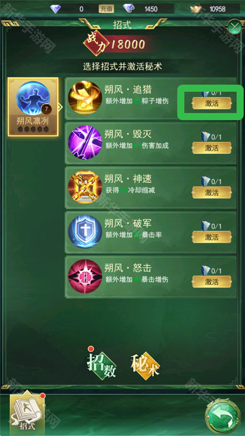 激活各招式的秘术,可让招式更加进阶,拥有更强大的伤害力。