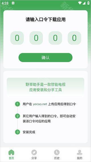 1、首先电视和手机上都安装了对应的野草助手app,然后打开手机上的app输入口令