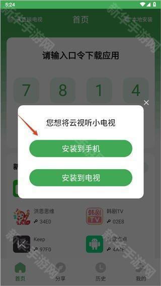 5、电视与手机互连后可以对电视上和手机上的应用进行口令生成分享操作