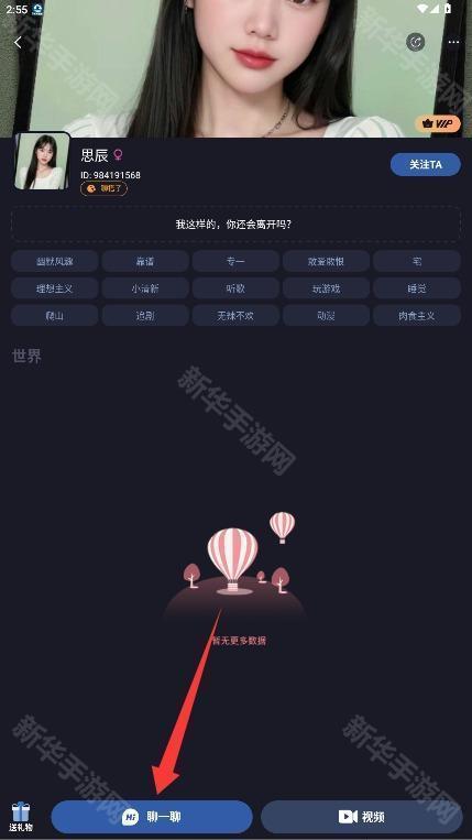 4、进入用户资料页面查看详细信息,点击聊一聊功能即可开启私信对话功能。