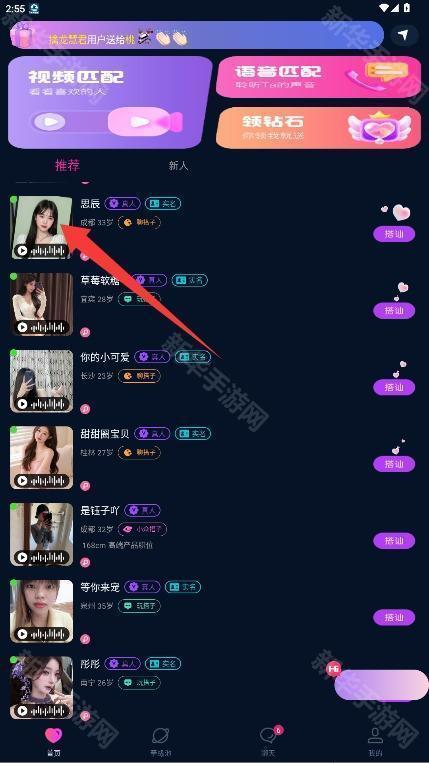 3、进入应用首页可浏览系统推荐的用户列表,选择心仪的用户点击头像进入查看。